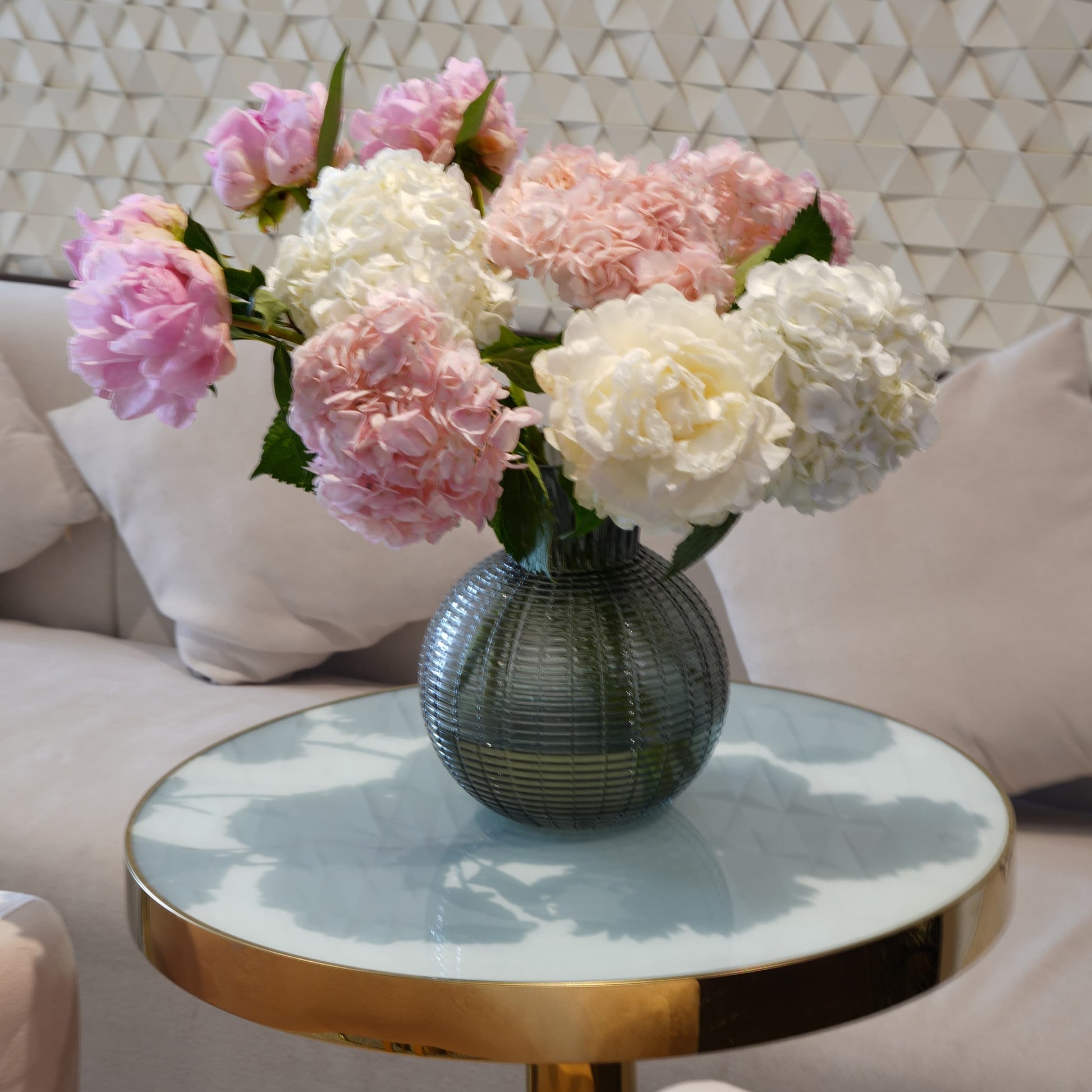 ناعمة، راقية، وأنيقة بكل بساطة - تتميز هذه الباقة الزهرية الفاخرة بثلاث زهور هدرانج وردية، وثلاث زهور هدرانج بيضاء، وثلاث زهور فاوانيا وردية، جميعها مزينة بجمالٍ أخّاذ مع خضرة رقيقة. إنها الهدية المثالية لأعياد الميلاد، واحتفالات المواليد الجدد، وحفلات توديع العزوبية، أو ببساطة للتعبير عن مدى تميزك.