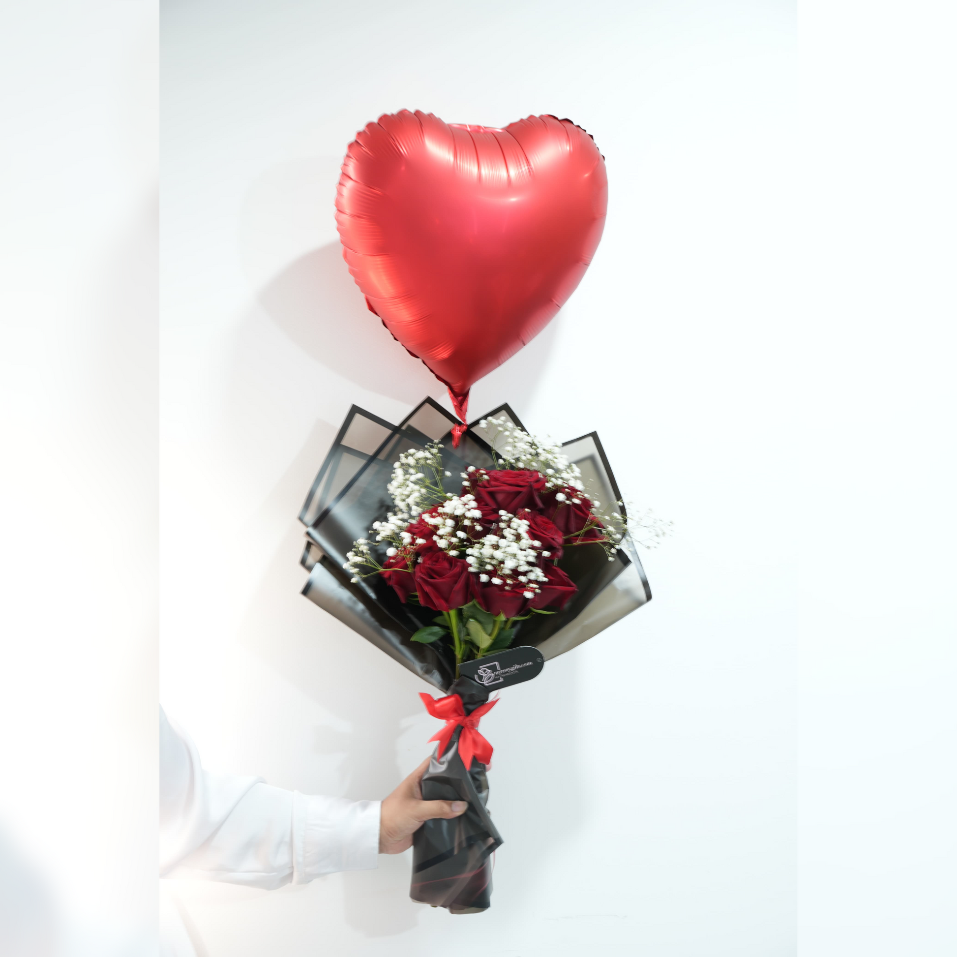 Romantic Red Rose Bouquet with Heart Balloon – Love Surprise Gift